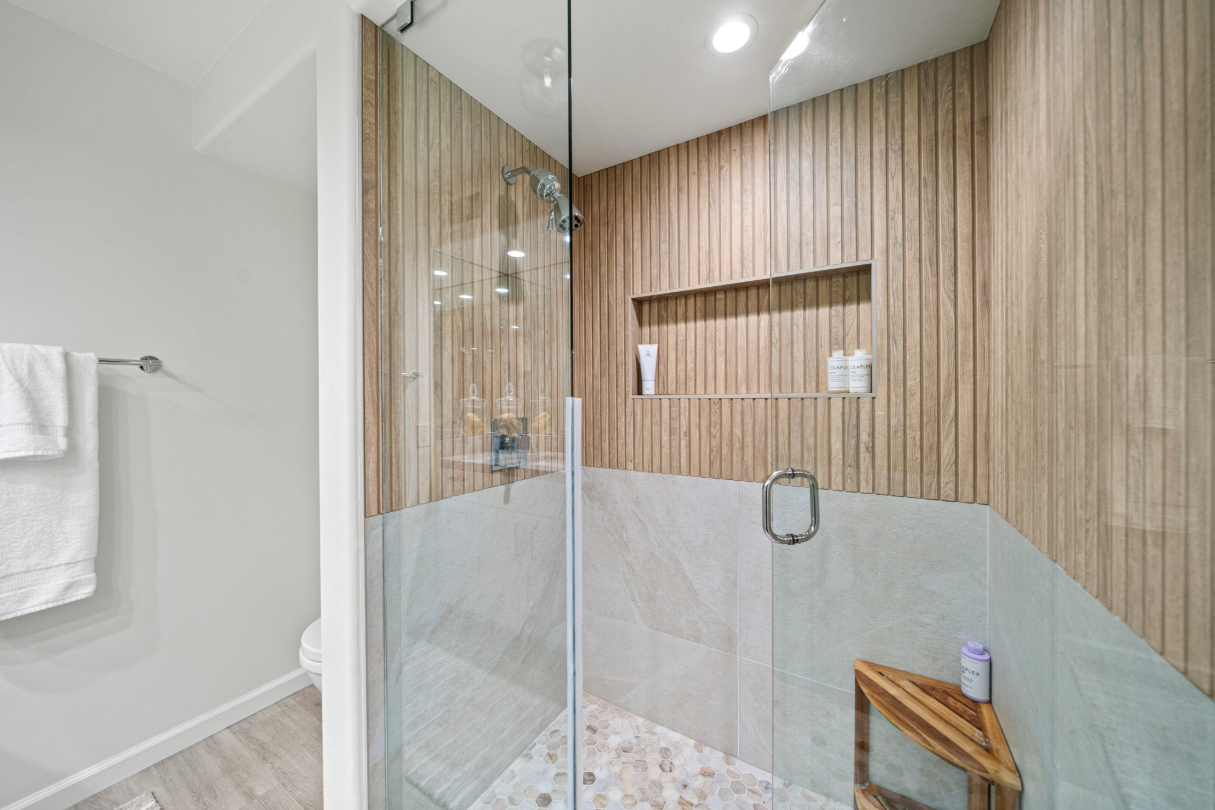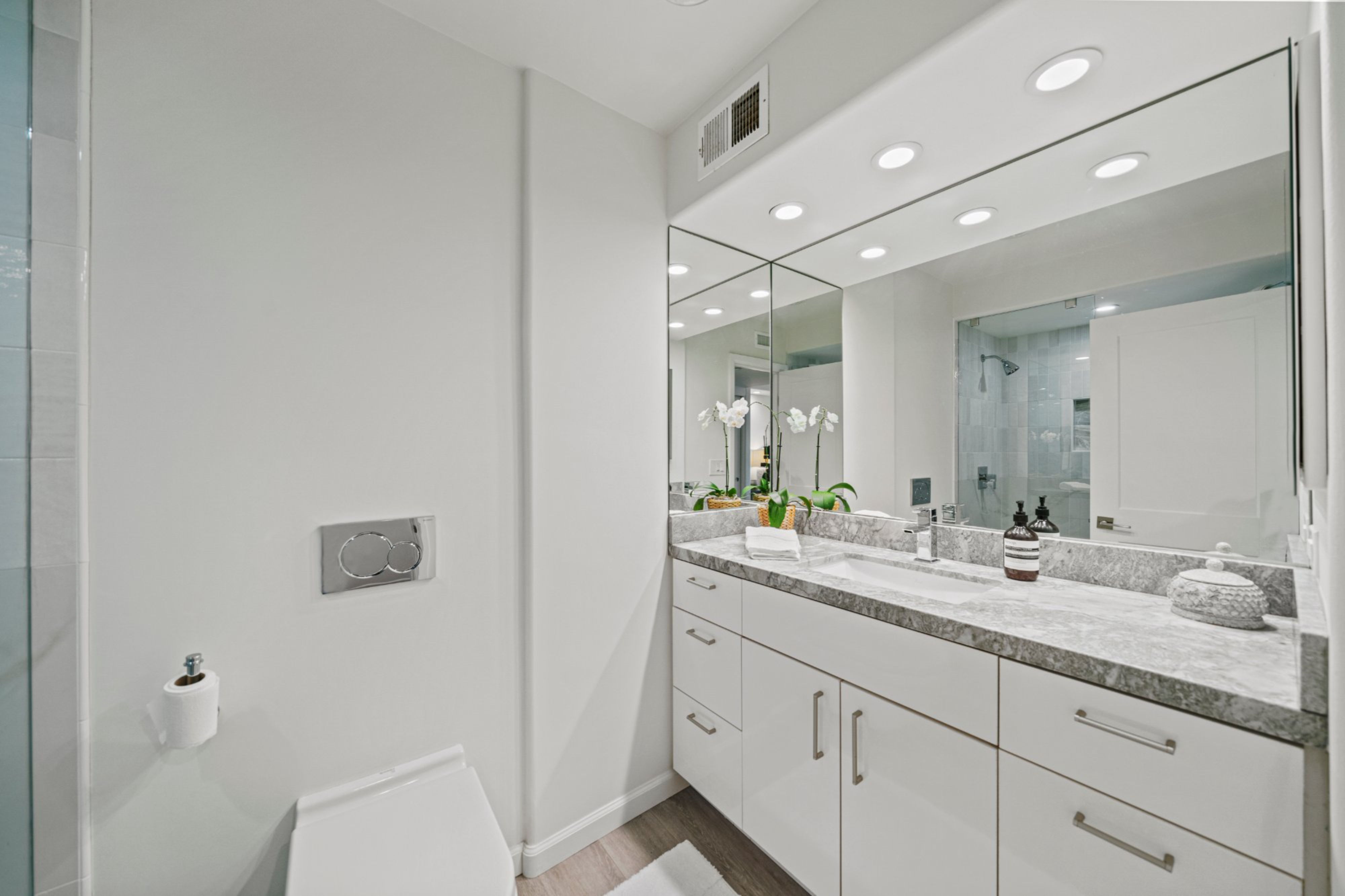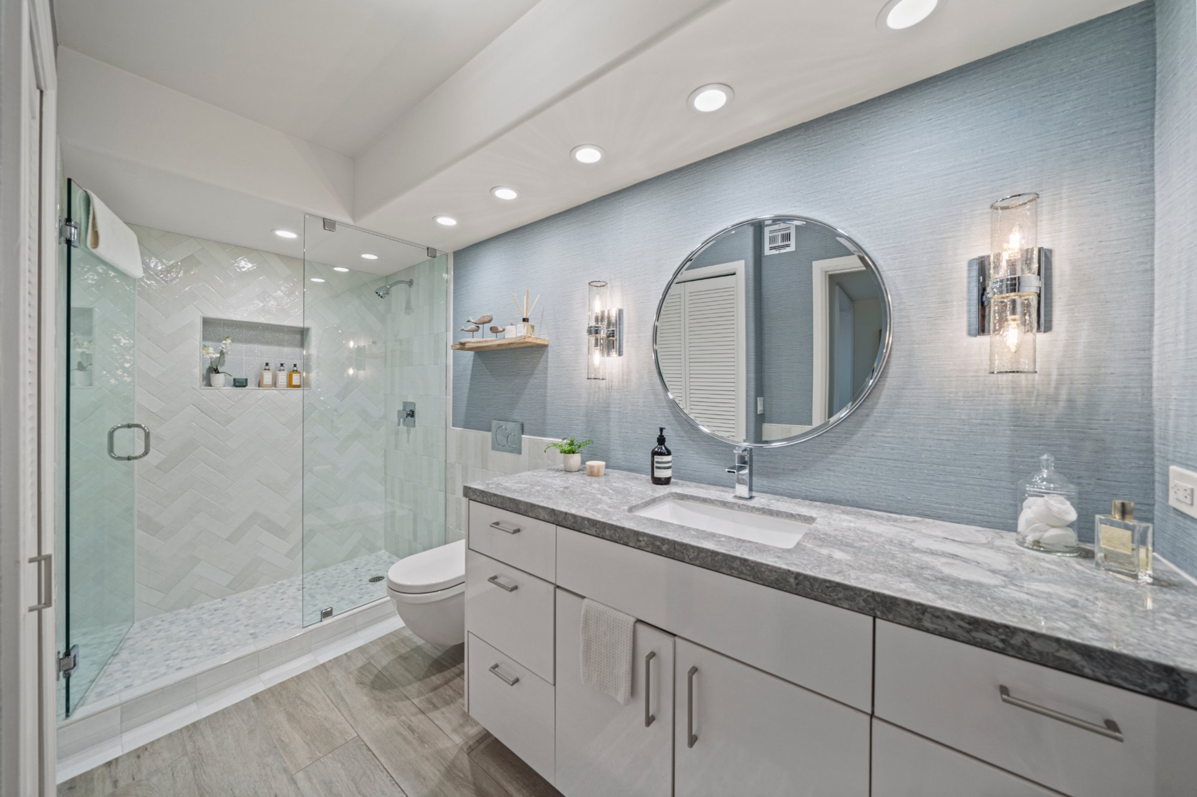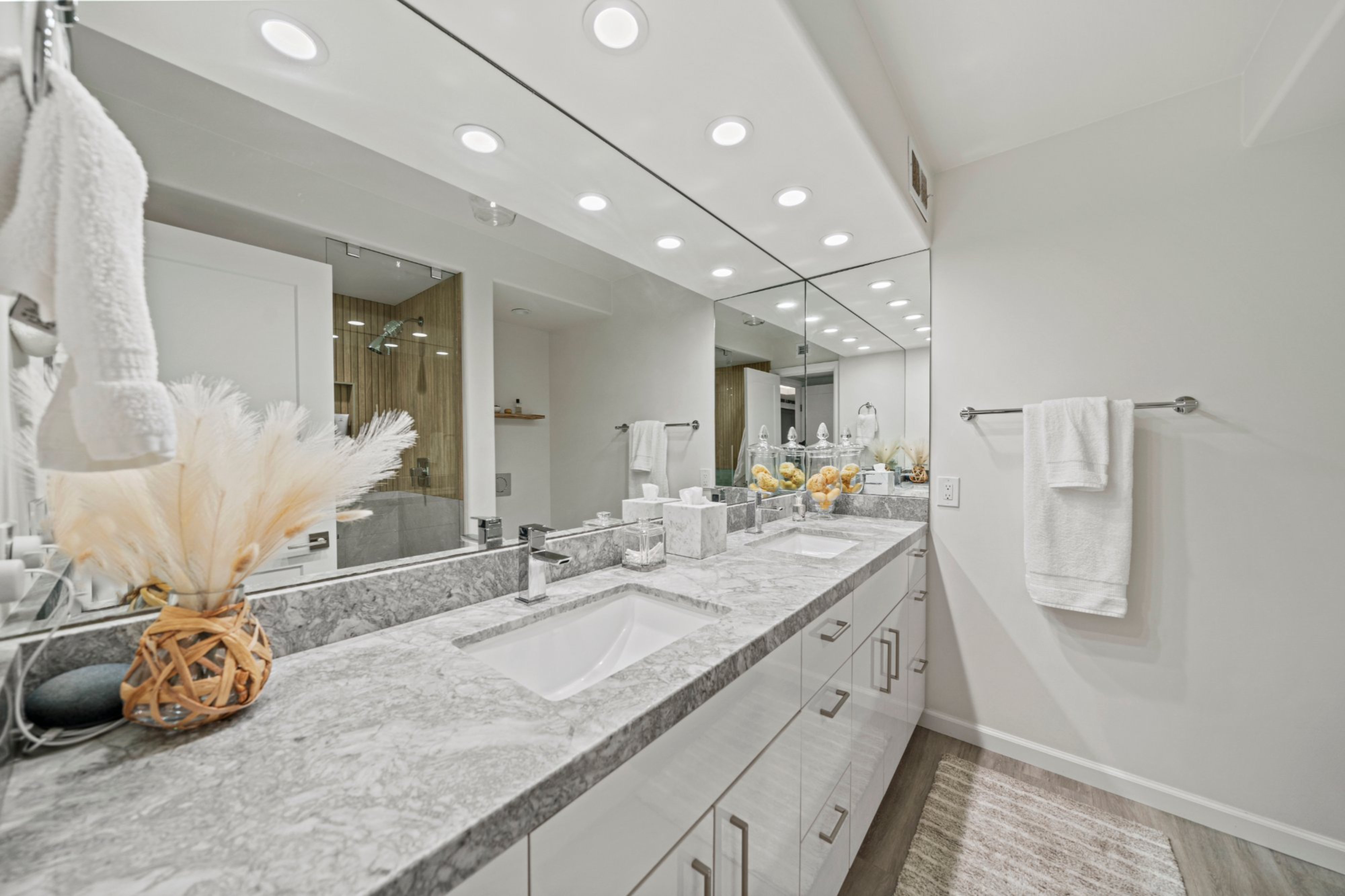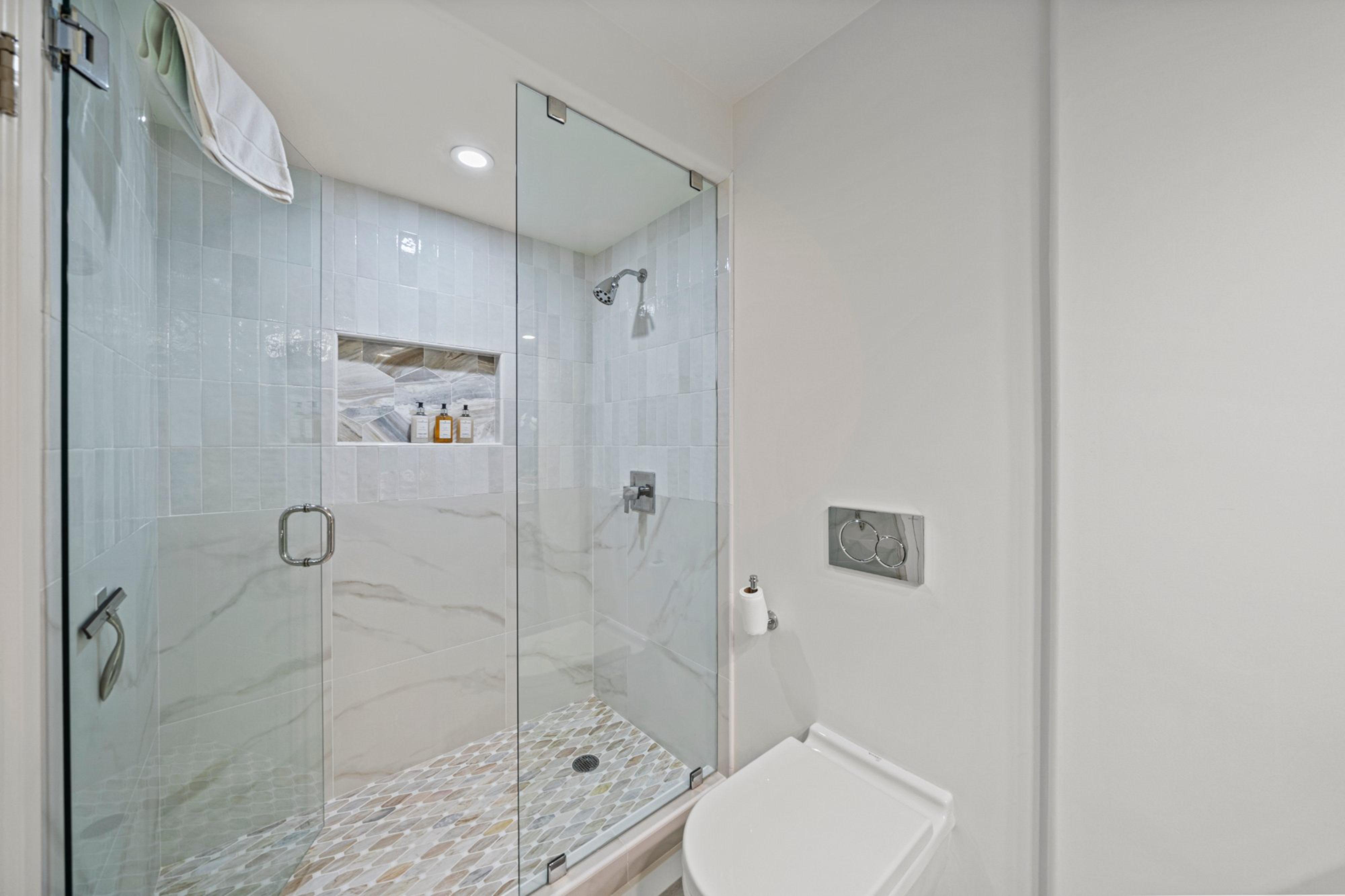 Offered fully furnished with high-end designer pieces, the interiors have been curated with exquisite craftsmanship and style. Highlights include hand-crafted woodwork in the living room and bar, custom trim in the hallway and primary suite, handmade tile in the kitchen and bathrooms, and designer wallpaper accents. The chef’s kitchen features all-new GE Café Signature Collection appliances, and the unit has new windows, automatic blinds, new interior doors and casings, upgraded lighting and sconces, and a new washer and dryer.