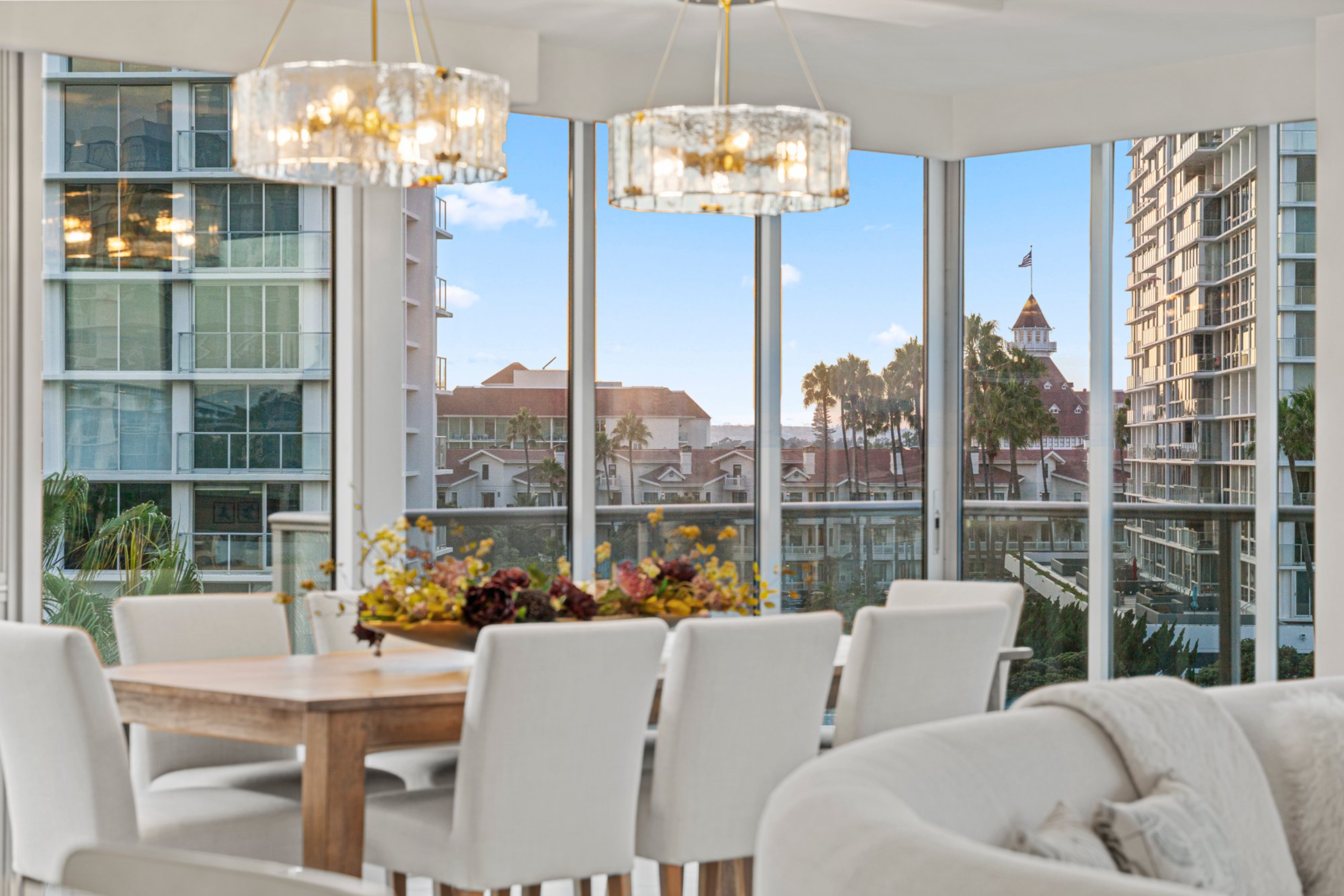 This home showcases breathtaking views of the Pacific Ocean, Hotel Del Coronado, San Diego skyline, bay, golf course, bridge, and unforgettable sunsets.