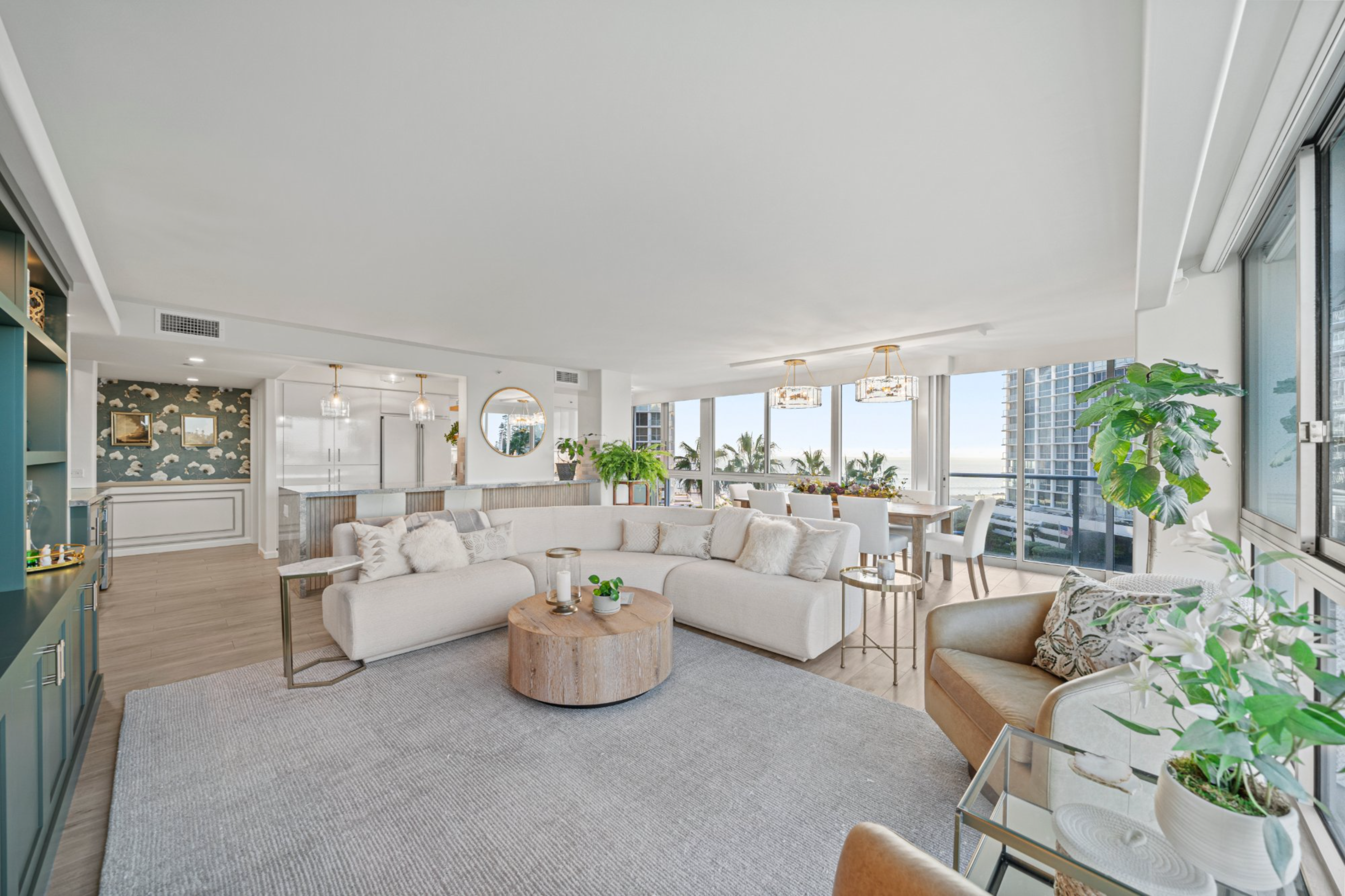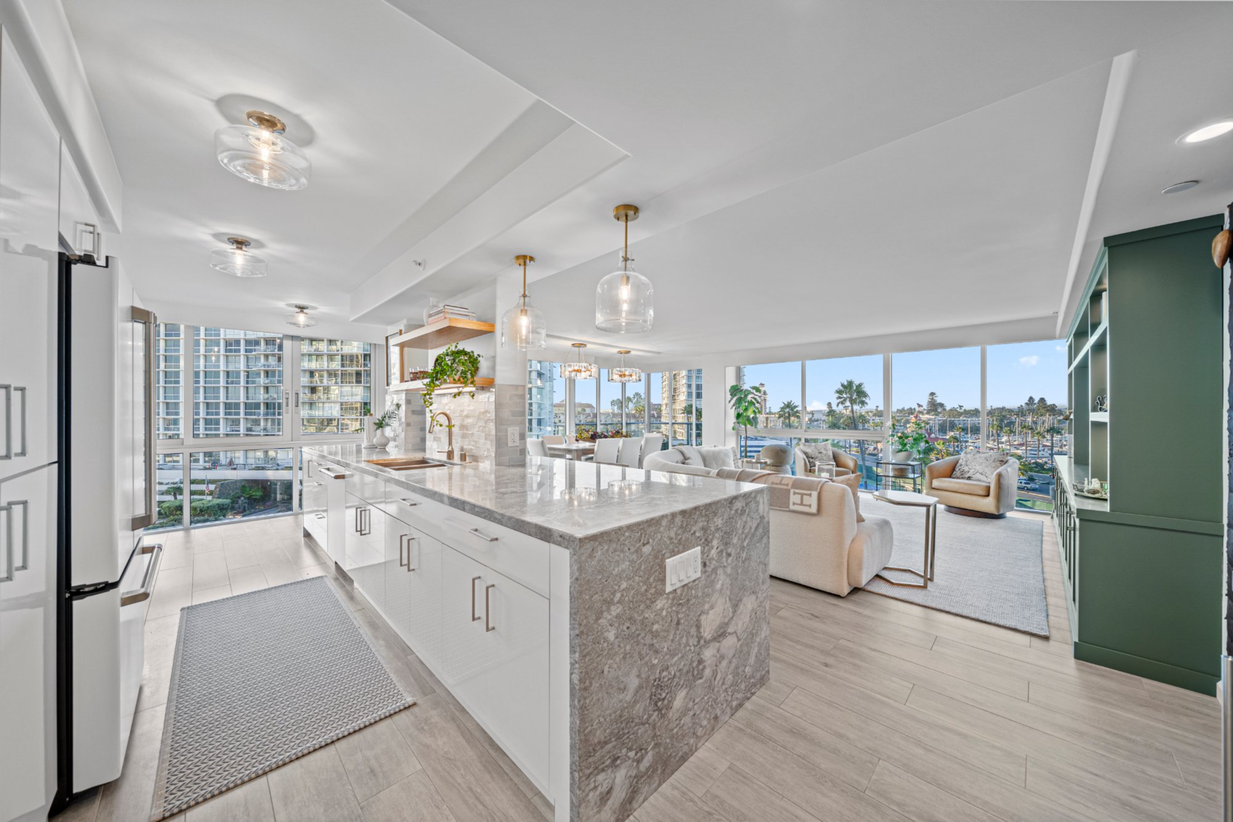 Perched in La Princesa, the newest and recently remodeled tower at The Shores, this one-of-a-kind home is complemented by beautifully renovated modern lobbies and hallways, offering a refined balance of classic elegance and coastal charm.